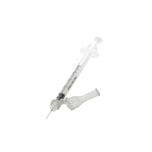 The Safety Shield Syringe is used to inject fluids into or withdraw fluids from the body. It can also be used for vaccine delivery. Additionally, the syringe is designed to help prevent needlestick injuries.