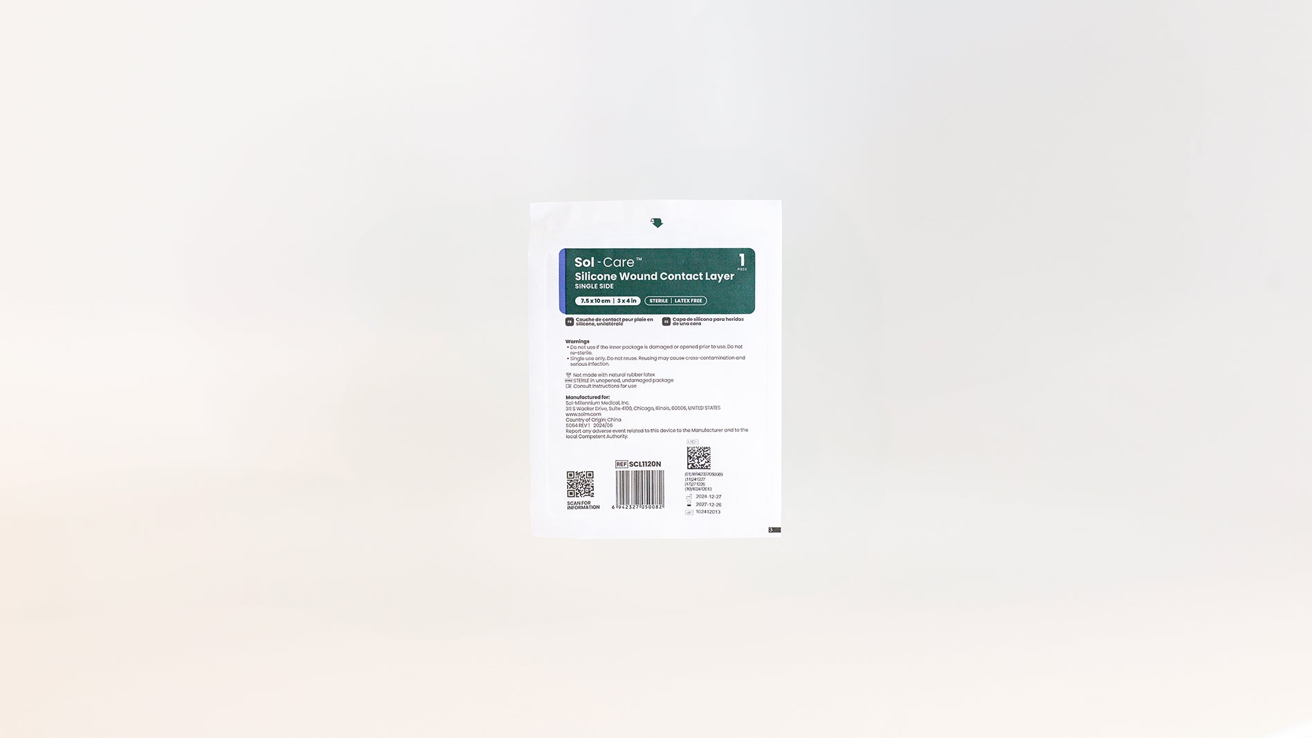 - Indications: The Sol-Care™ Silicone Wound Contact Layer is designed to manage a wide variety of exuding and non-exuding wounds, and areas with fragile skin. It is ideal for treating conditions such as skin tears, abrasions, blisters, foot ulcers, pressure injuries, leg ulcers, first- and second-degree burns, partial and full-thickness grafts, epidermolysis bullosa, and surgical and traumatic wounds. It can also be used as a wound contact layer in combination with Negative Pressure Wound Therapy (NPWT).