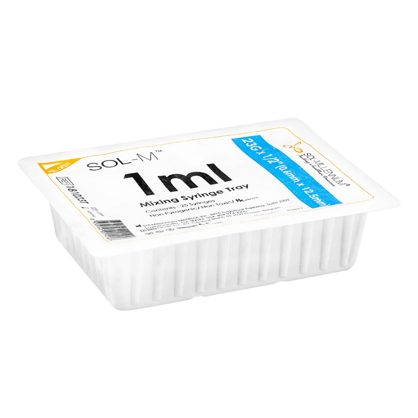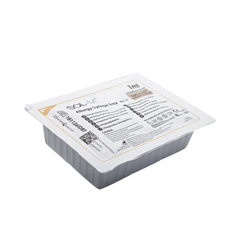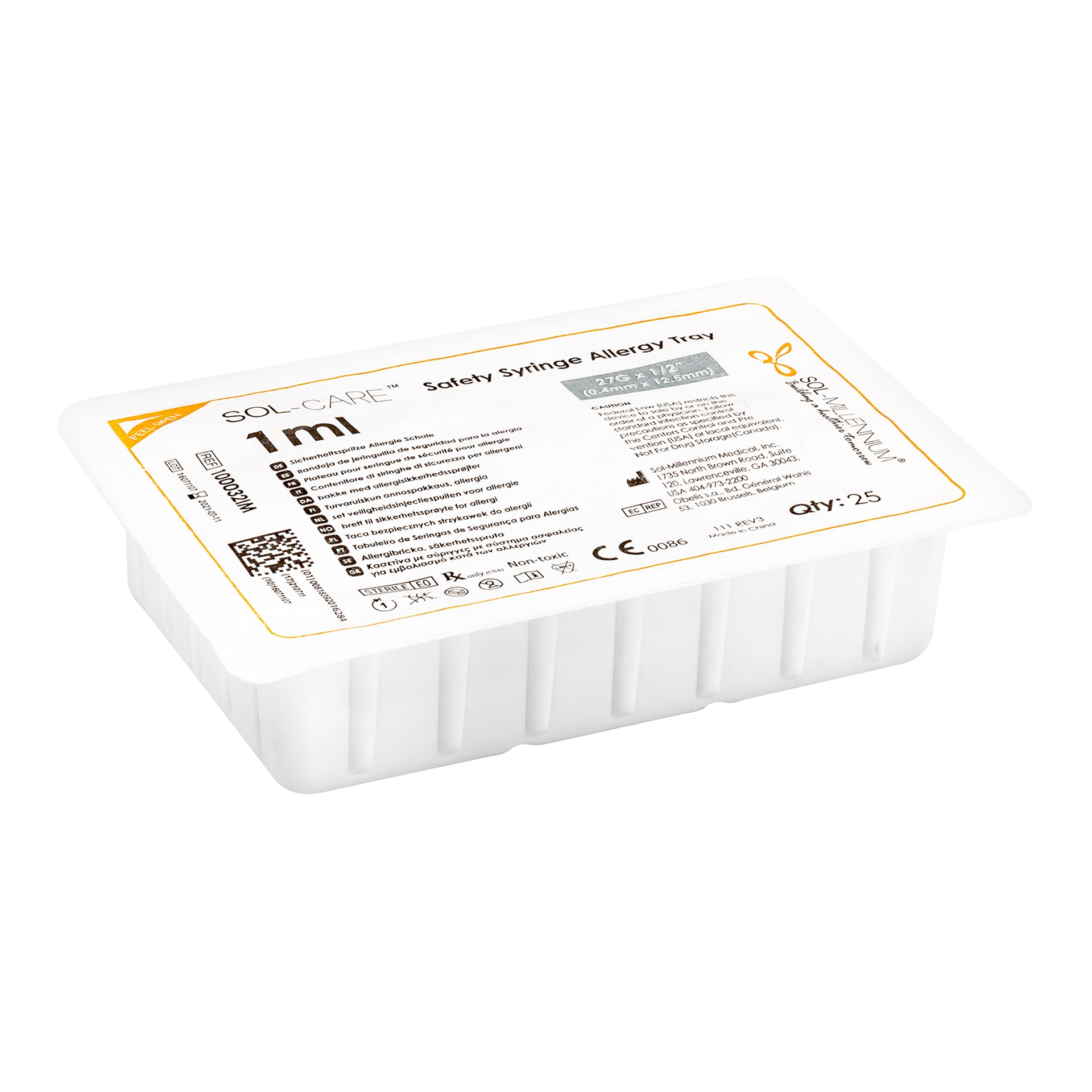 The Sol-M Allergy Syringes have transparent barrels with bold, easy to read graduations that allow for accurate filling and dosing. They feature a low dead space design and are packaged in sterile convenience trays.