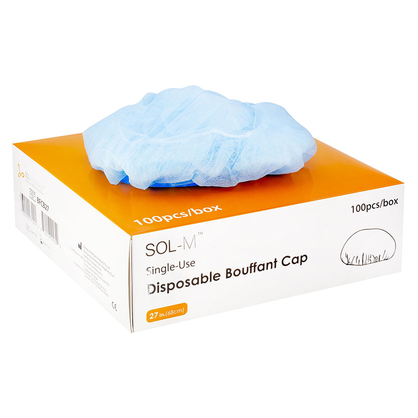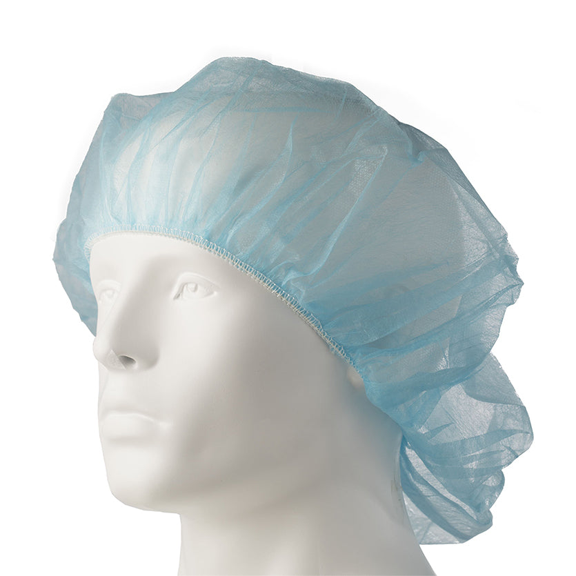 Disposable SPP bouffant cap with elastic band. Available in 3 sizes: 21", 24", and 27".