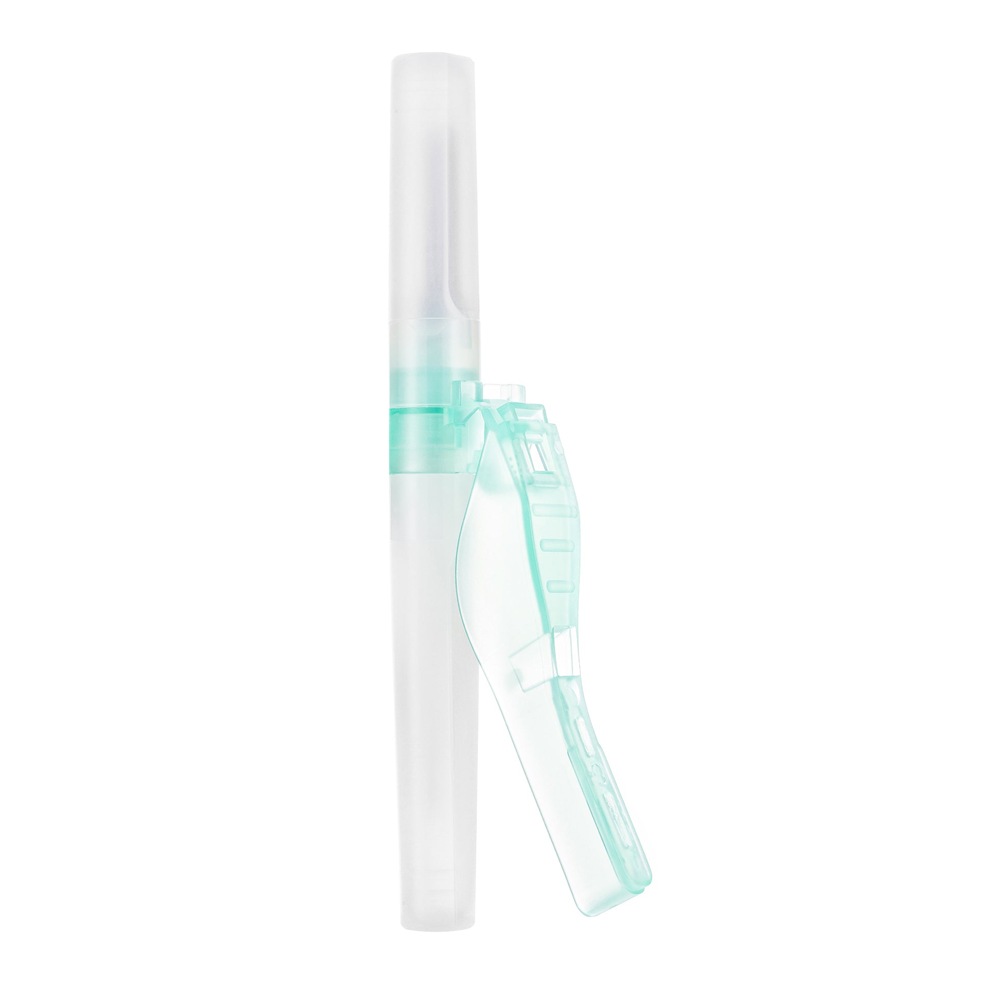 - Pivoting safety shield with audible click that indicates it is locked in place