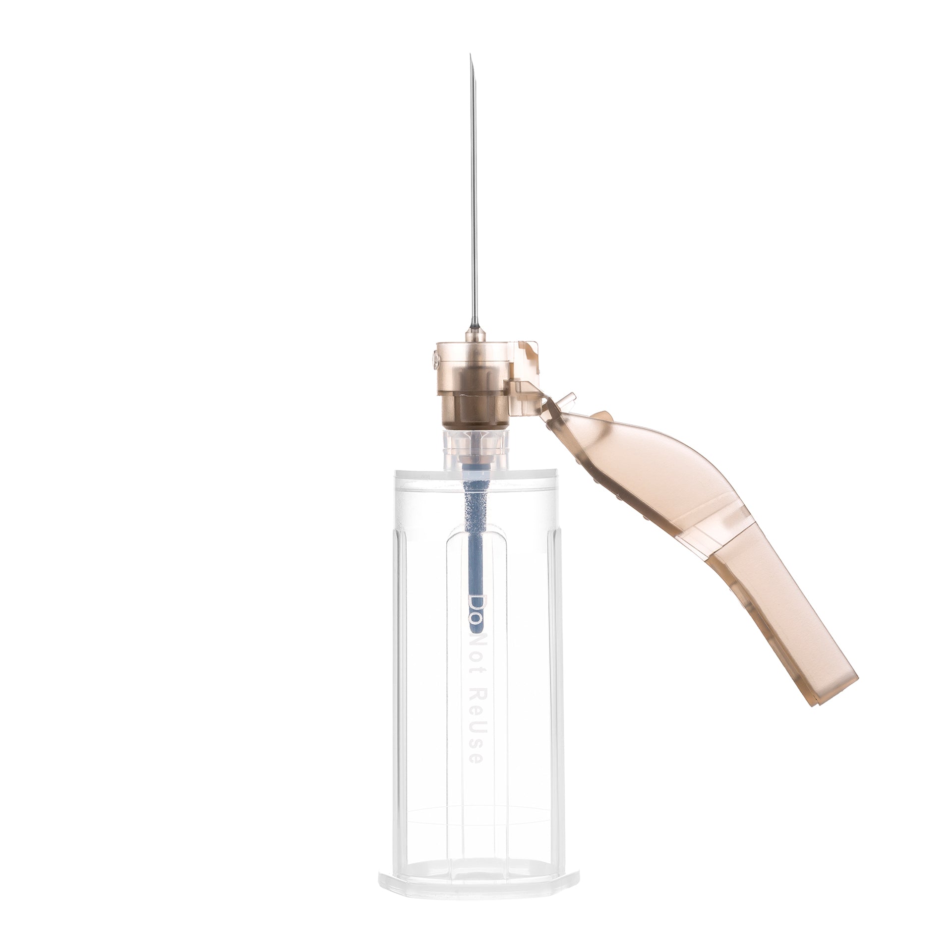 - Safety shield aligns with a bevel up needle orientation, allowing for low-angle penetration