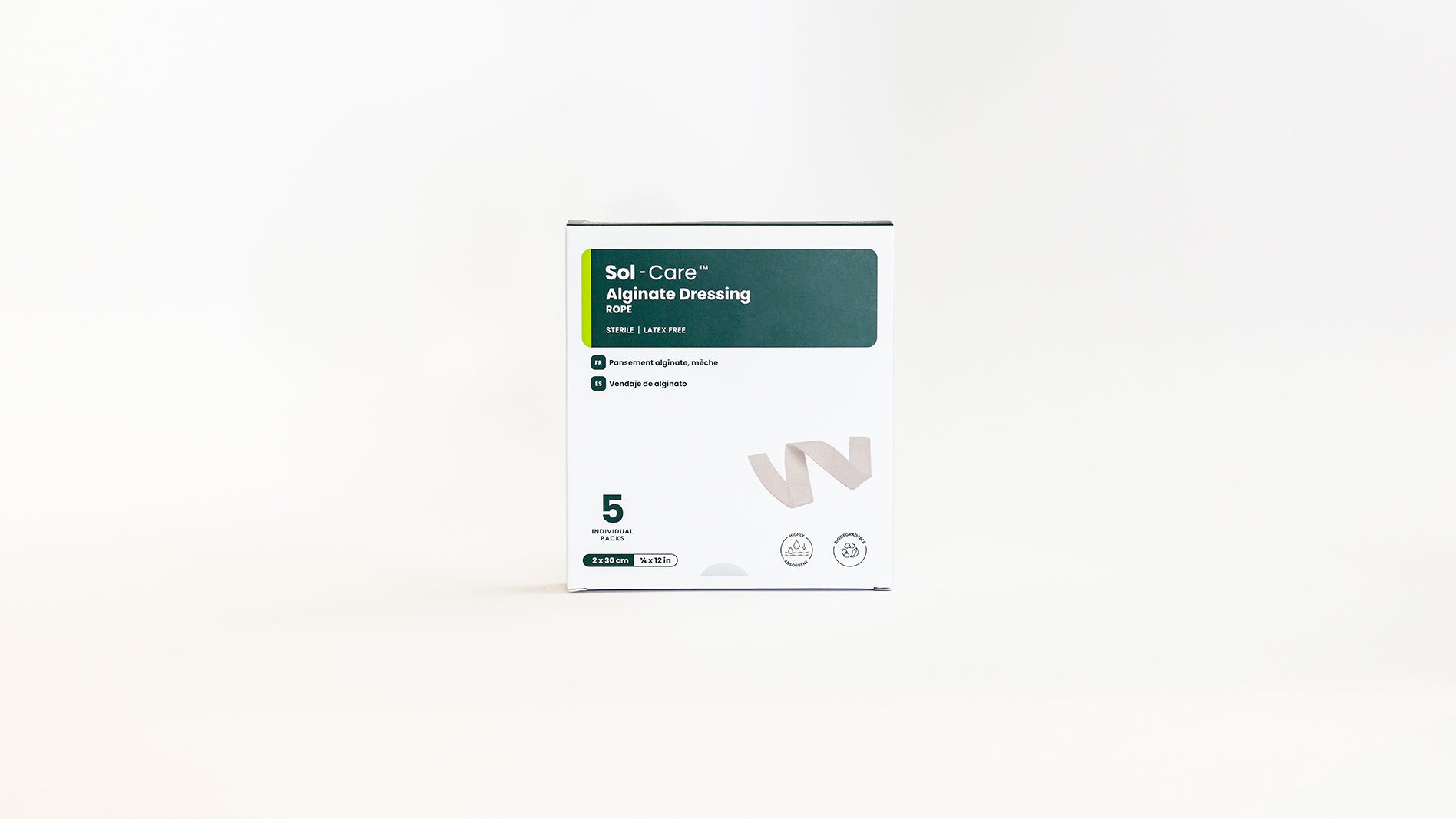 • Indications: Sol-Care™ Alginate Dressing is designed for moderately to high exuding wounds, such as diabetic foot ulcers, pressure injuries, venous and arterial leg ulcers, superficial burns, donor sites, post-operative wounds and traumatic wounds.