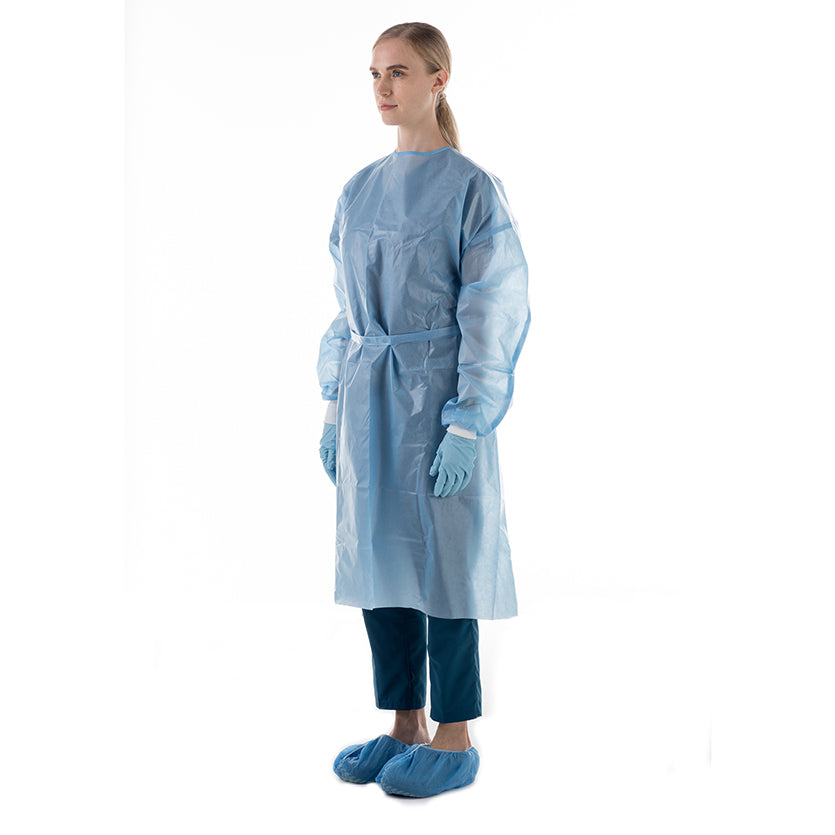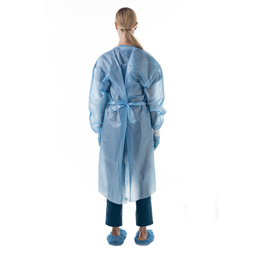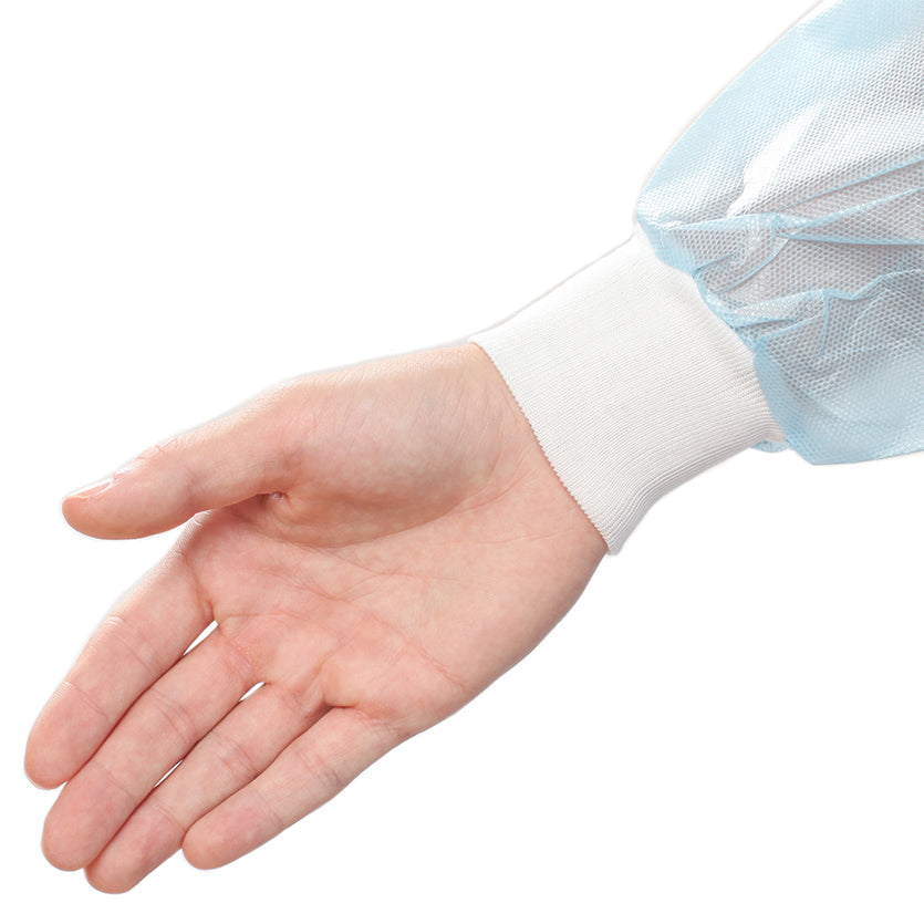 AAMI Level 3 isolation gown constructed from poly-coated SPP that is highly fluid-resistant. Hook and loop neck closure for easy donning and doffing with durable binding. Premium knit cuffs and wide belt ties at the waist.